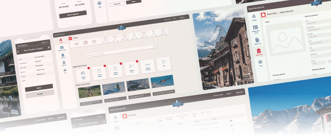 Mit Zermatt Tourismus haben wir das Meldewesen digitalisiert – von der Kurtaxenabrechnung bis zu zentralen Gästestatistiken. 600 Hotels, 120 APIs und über 1'000 Buchungen pro Tag.