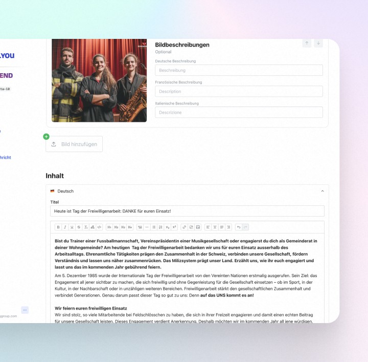 Über ein modernes Admin-Backend können Inhalte geplant, moderiert und zielgruppenspezifisch ausgespielt werden – effizient, intuitiv und ohne technische Hürden.