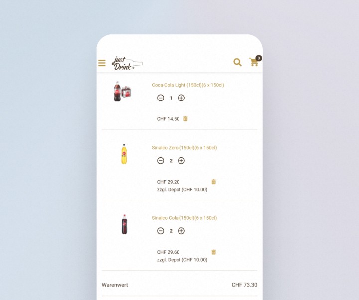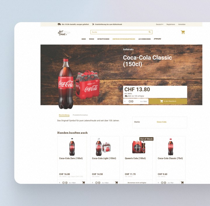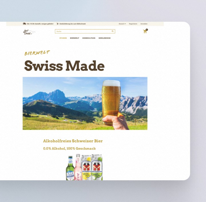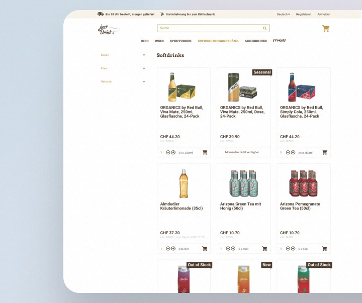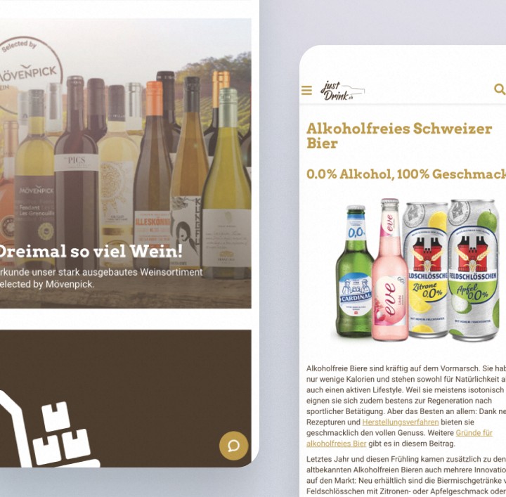 Mit justDrink haben wir mit Feldschlösschen die größte Online-Getränkehandelsplattform der Schweiz entwickelt – von der Idee bis zum Launch in nur neun Monaten.