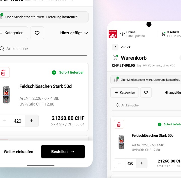 Die neue Lösung ist seit Dezember 2025 produktiv im Einsatz und wird laufend weiterentwickelt. Für Webstar bedeutet sie: schnelleres Bestellen, weniger Fehler und ein stabiles, modernes Fundament für die Zukunft.